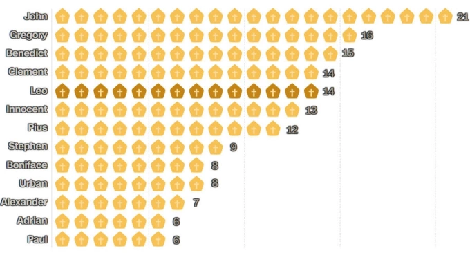 Những tông hiệu được 5 Giáo hoàng trở lên lựa chọn. Đồ họa: CNN
