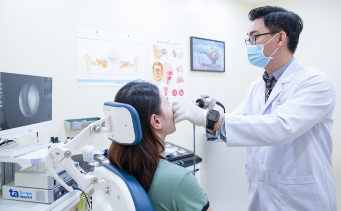 Bác sĩ Xuân Nguyên đang nội soi mũi cho một người bệnh. Ảnh minh họa: Phòng khám Đa khoa Tâm Anh Quận 7